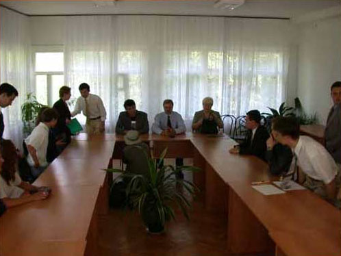 На конференции во время открытия Молодежного российско-украинского лагеря, 2001г.